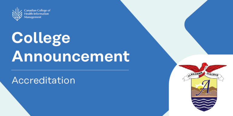 The Canadian College of Health Information Management (College) would like to announce the successful accreditation of Alexander College’s proposed Bachelor of Science in Health Information Management program.
